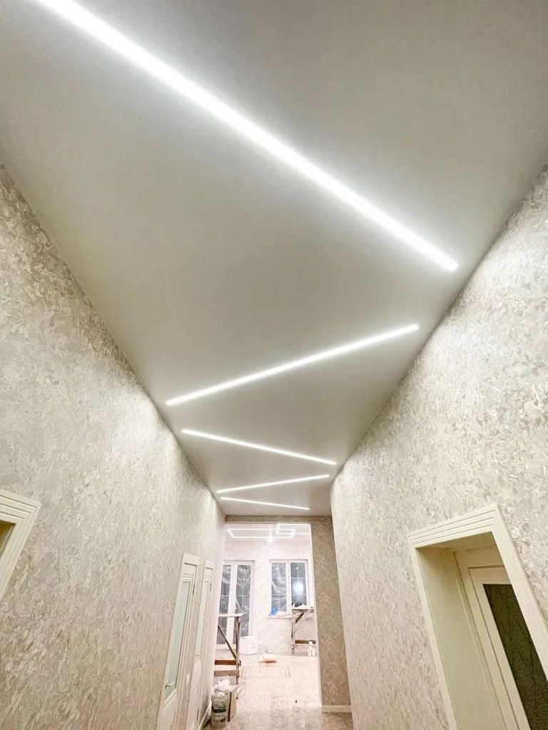 - Крепление алюминиевого профиля по периметру помещения, монтаж закладных под светильники, разводка электропроводки.