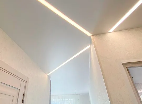 Сделали контурный натяжной потолок - выглядит круто. Рассматривали и теневой натяжной потолок, но в итоге выбрали контурном. Качество работы шикарное, потолок эффектный, интерьер сразу стал выглядеть дороже.