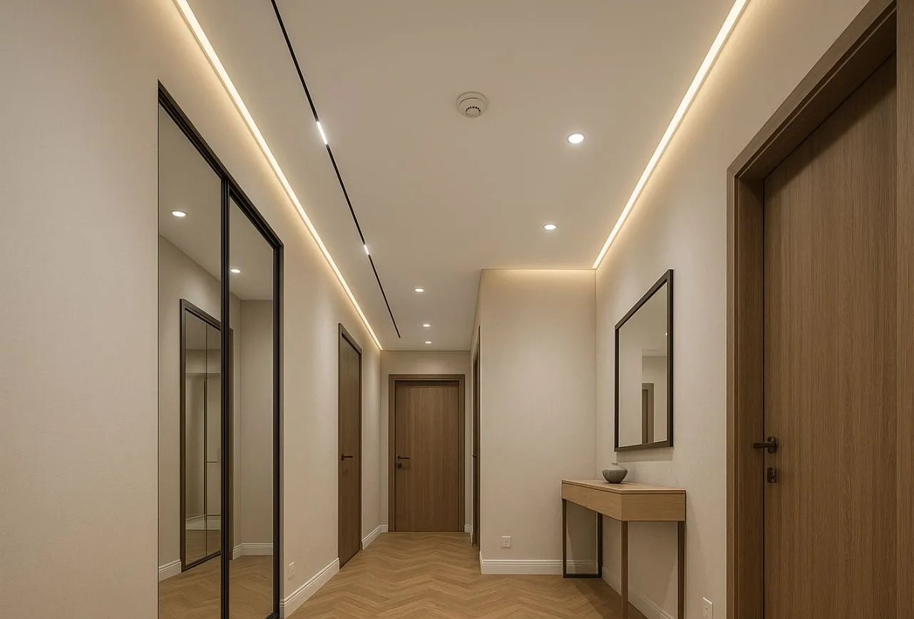Основные плюсы установки натяжного потолка в коридоре дома или квартиры: